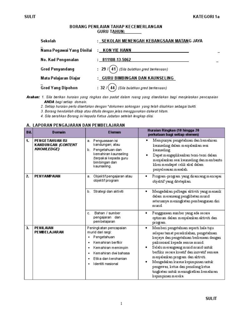 Contoh Sijil Kenaikan Pangkat Untuk Guru